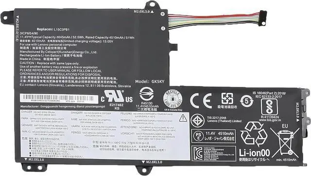 SPECIFICATION : Model Name:L15C3PB1-7 Voltage: 11.4V; Capacity: 52.5Wh 4645mAh; Grade A cells ensure fast charges and low power consumption; Built-in circuit protection ensures both safety and stability. Condition: 100% New; Battery life: More than 1000 cycles.Voltage: 11.4V; Capacity: 52.5Wh 4645mAh