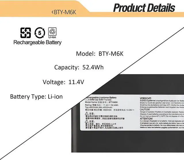 BTY-M6K Batería de Repuesto para computadora portátil Compatible for MSI MS-17B4 MS-16K3 GS63VR 7RG 7RG-005 7RG-036CN GF63 8RD-031TH 8RC-034CZ 9SC GF75 3RD 8RC 8RD 8SC 9SC-088CN 11.4V 52.4Wh 4500mAh