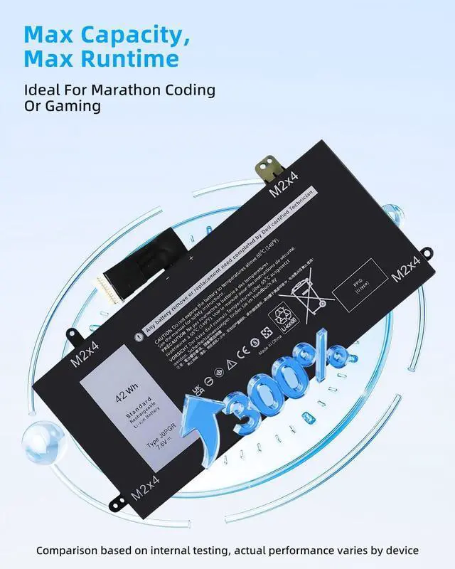 SPECIFICATION : Model Name: J0PGR Voltage : 7.6V; Capacity : 42Wh; Cells: 2-Cell; ; Grade A cells ensure fast charges and low power consumption; Built-in circuit protection ensures both safety and stability. Condition: 100% New; Battery life: More than 1000 cycles.