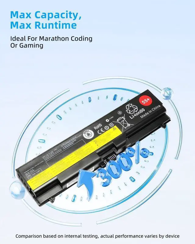 SPECIFICATION : Model Name: T410 55+ Voltage: 10.8V ; Capacity: 57WH; Cells: 6-cell; Grade A cells ensure fast charges and low power consumption; Built-in circuit protection ensures both safety and stability. Condition: 100% New; Battery life: More than 1000 cycles.