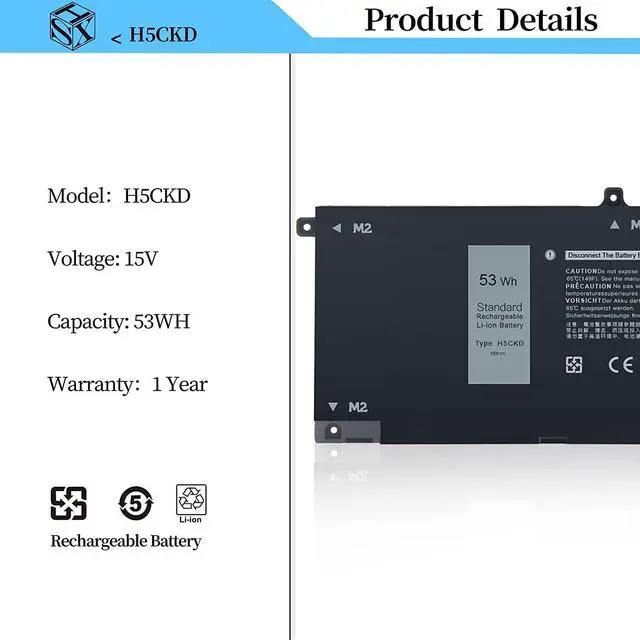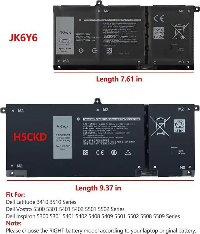 H5CKD Batería de Repuesto para computadora portátil Compatible for Dell 3410 3510 5300 5401 5501 5300 5401 5408 5501 5508 5400 7405 7300 7500 2-in-1 Series 07T8CD 0TXD03 09077G JK6Y6 [15V/53Wh]