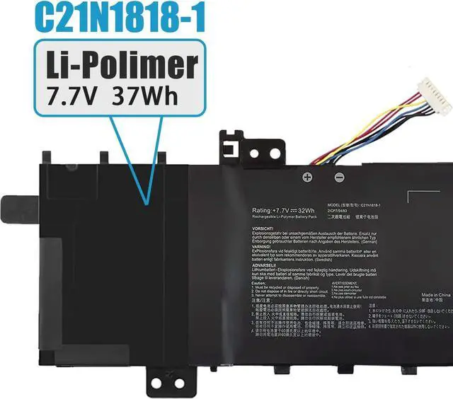 LONG-LASTING BATTERY LIFE: With 7.7V, capacity (37WH/ 4850mAh), the (C21N1818-1) battery ensures all-day power for your laptops in a factory-fresh, never-used battery pack designed for maximum performance.
