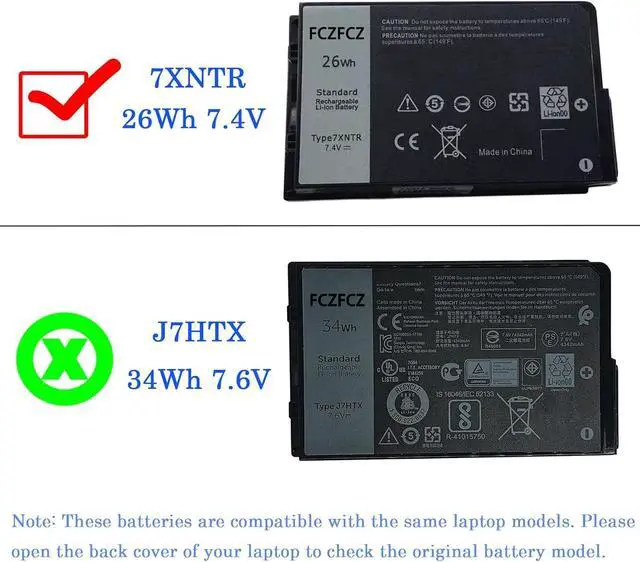 Compatible with Machine Modelsfor Dell Latitude 7202 Rugged Extreme Series; for Dell Latitude 7212 Rugged Extreme Series; for Dell Latitude 7220 Rugged Extreme Series. Note:These laptops are compatible with two different battery capacities (26Wh and 34Wh).To save your time and money, please open the laptop back cover to confirm your battery is the same as described in the picture before ordering.