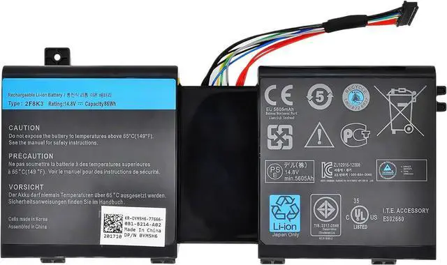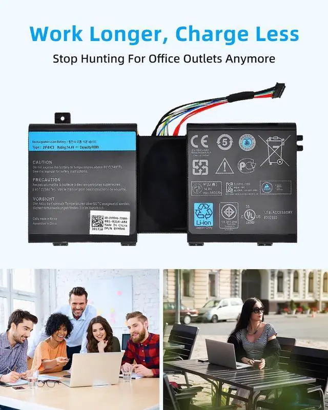 SPECIFICATION : Model Name: 2F8K3 Voltage:14.8V; Capacity: 86Wh 5700mAh; Grade A cells ensure fast charges and low power consumption; Built-in circuit protection ensures both safety and stability. Condition: 100% New; Battery life: More than 1000 cycles.