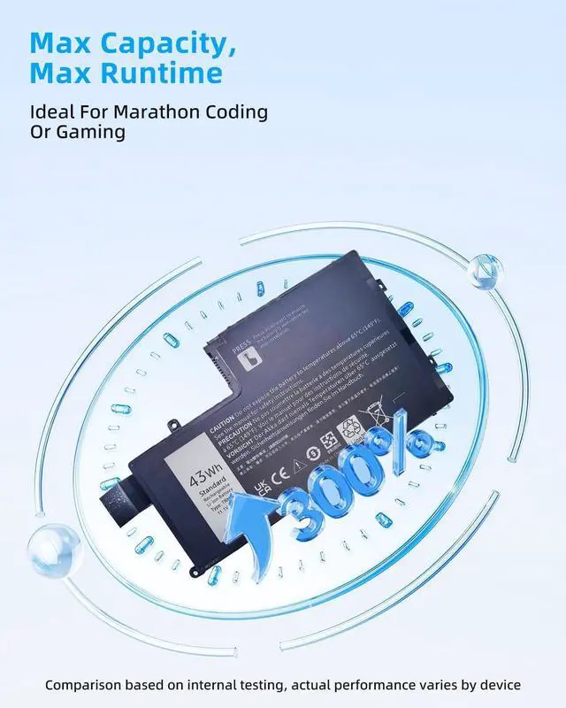 SPECIFICATION : Model Name: TRHFF Voltage: 11.1V; Capacity: 43Wh; Grade A cells ensure fast charges and low power consumption; Built-in circuit protection ensures both safety and stability. Condition: 100% New; Battery life: More than 1000 cycles.