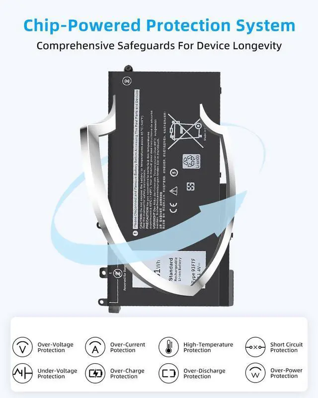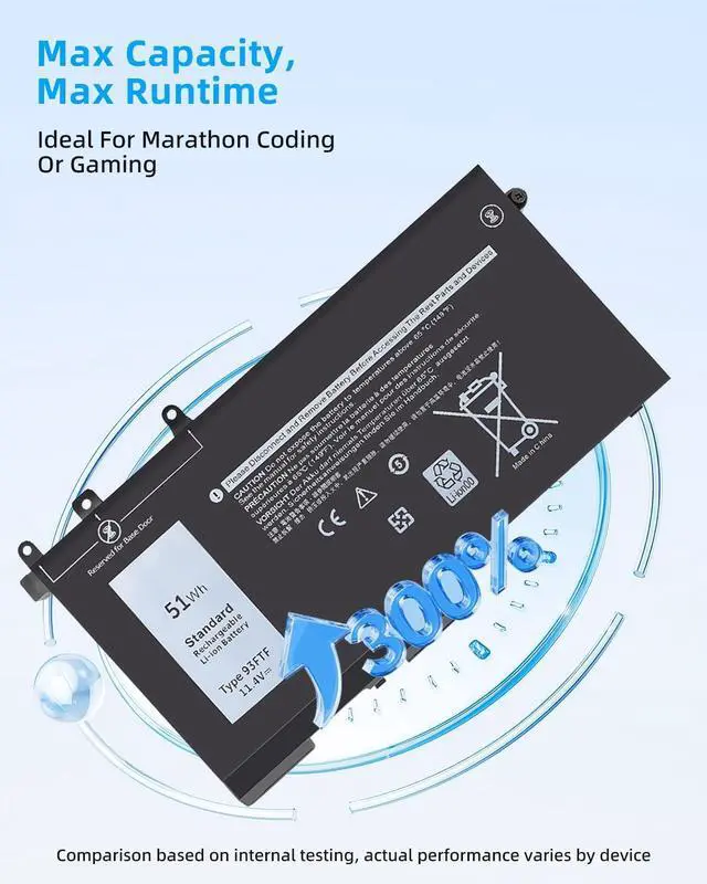 SPECIFICATION : Model Name: 93FTF Voltage: 11.4V; Capacity: 51Wh; Cells: 3 cells; Grade A cells ensure fast charges and low power consumption; Built-in circuit protection ensures both safety and stability. Condition: 100% New; Battery life: More than 1000 cycles.
