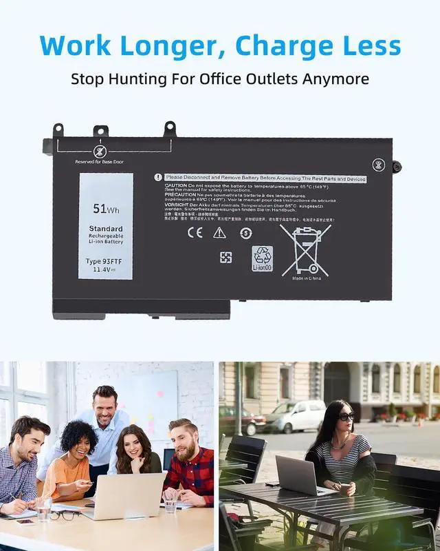 COMPATIBLE P/N: Upgrade your Latitude 5580 laptop experience with our 93FTF battery, which is perfectly compatible with a wide range of Part Numbers, including 51Wh 93FTF, D4CMT, 083XPC, 83XPC, 4YFVG, 451-BBZT