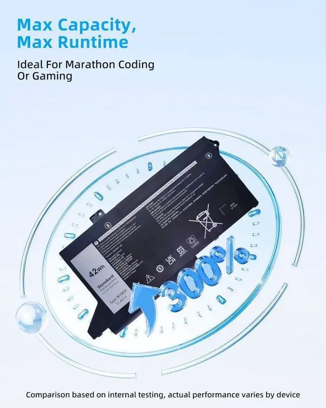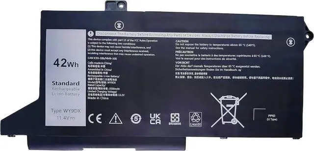SPECIFICATION : Model Name: WY9DX Voltage: 11.4V. Capacity:42Wh. Cells:3-Cell.; Grade A cells ensure fast charges and low power consumption; Built-in circuit protection ensures both safety and stability. Condition: 100% New; Battery life: More than 1000 cycles.