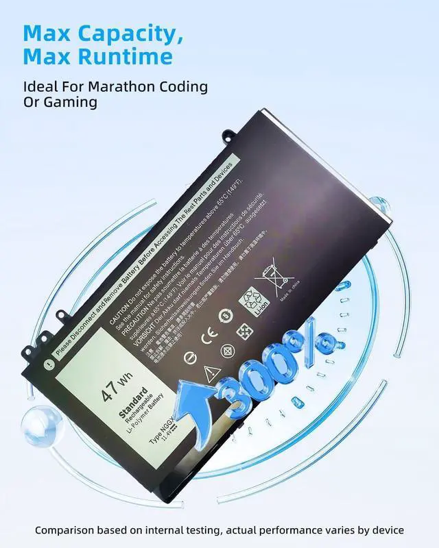 SPECIFICATION : Model Name: NGGX5 Voltage: 11.4V; Capacity: 47Wh; Cell: 3-cells; Grade A cells ensure fast charges and low power consumption; Built-in circuit protection ensures both safety and stability. Condition: 100% New; Battery life: More than 1000 cycles.