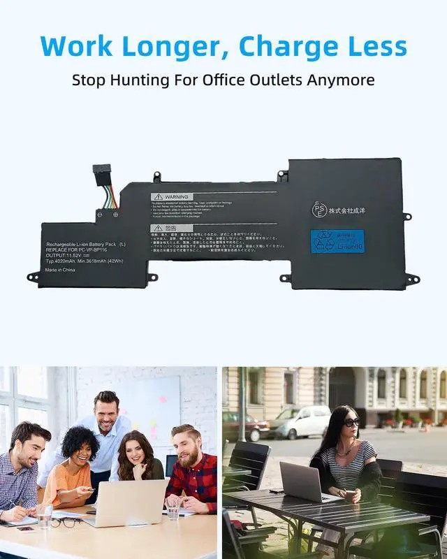 SPECIFICATION : Model Name: PC-VP-BP116 Voltage: 11.52V; Capacity: 42Wh/3618mAh; Cells: 6-cell; Grade A cells ensure fast charges and low power consumption; Built-in circuit protection ensures both safety and stability. Condition: 100% New; Battery life: More than 1000 cycles.