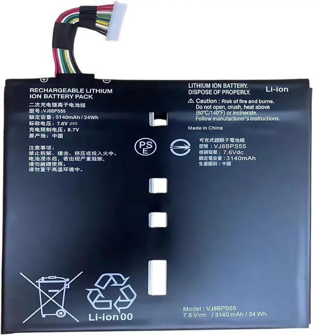 • SPECIFICATION : Model Name: VJ8BPS55 Voltage: 7.6V; Capacity: 24Wh/3140mAh; Cells: 4-cell; Grade A cells ensure fast charges and low power consumption; Built-in circuit protection ensures both safety and stability. Condition: 100% New; Battery life: More than 1000 cycles.
