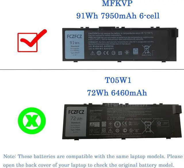 Replacement for Part NumberMFKVP T05W1 TO5W1 0FNY7 1G9VM 451-BBSB 451-BBSE 451-BBSF GR5D3 M28DH RDYCT
