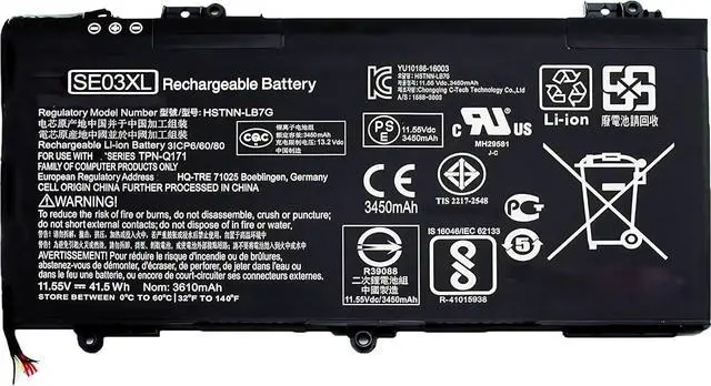 COMPATIBLE P/N: SE03XL / HSTNN-LB7G / HSTNN-UB6Z / 849568-421 / 849908-850