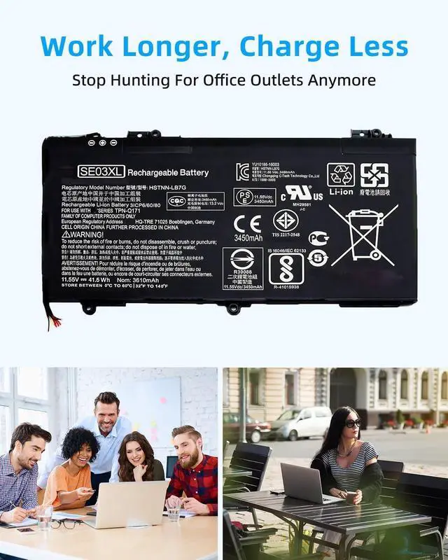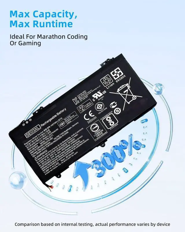 SECURITY AND WARRANTY: JBERY SE03XL laptop batteries have passed strict intelligent detection, such as short circuit protection, over voltage protection, discharge protection, over current protection, which is very important for batterys use cycle and safety. All batteries are equipped with high quality material to ensure good performance. CE, FCC, RoHS certificated. 90 Days Money Return 18 Months Replacement2 Years Tech Assistance
