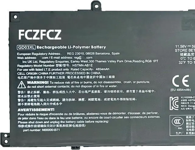 Replacement for Part NumberGD03XL GD03059XL N66215-005 N66000-1E1 N66000-2C1 N66000-AC1 N66000-B71 HSTNNN-AB1E HSTNNN-OB3K HSTNN-AB1E N66000-1E1 N66000-2C1 N66000-AC1 TPN-DB1V TPN-IB0Z