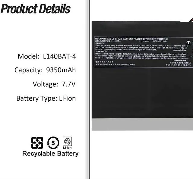L140BAT-4 Batería de Repuesto para computadora portátil Compatible for Clevo L140CU L141CU L140MU L14 14 2020 17 E21 E22 2020 2021 2022 6-87-L140S-72B01 73Wh