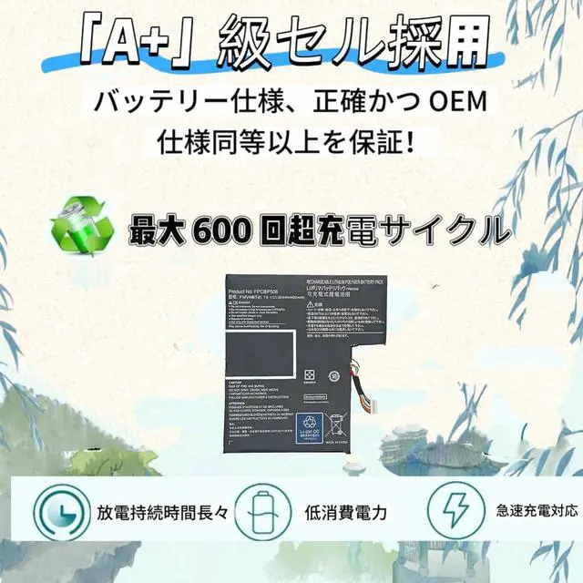 High capacity design: 33.6 Wh / 4420 mAh large capacity battery; Provides a long run time equivalent to the original product (Maximum continuous usage: about 7 hours) High density lithium-ion cells with a capacity of over 80% even after 500 charges and discharges