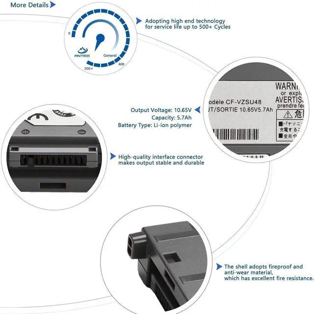 CF-VZSU48 Batería de Repuesto para computadora portátil Compatible for Panasonic CF-19 CF19 MK1 MK2 MK3 MK4 MK5 MK6 MK7 MK8 CF-VZSU48 CF-VZSU48U CF-VZSU48R CF-VZSU50 CF-VZSU58U 10.65V 58Wh