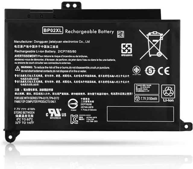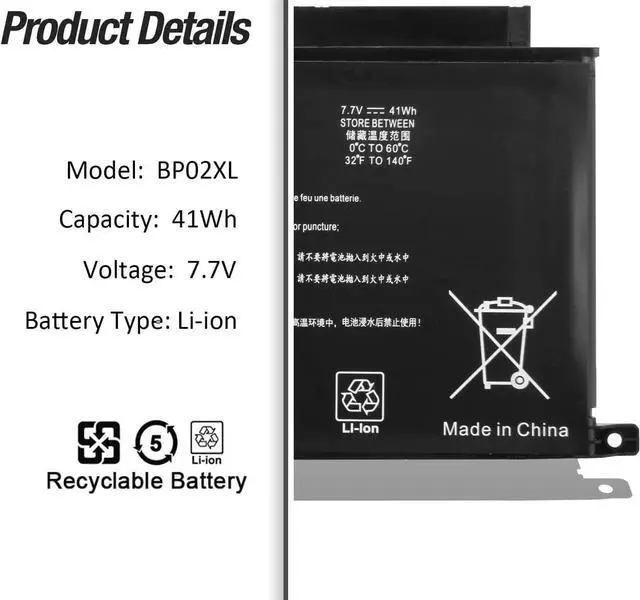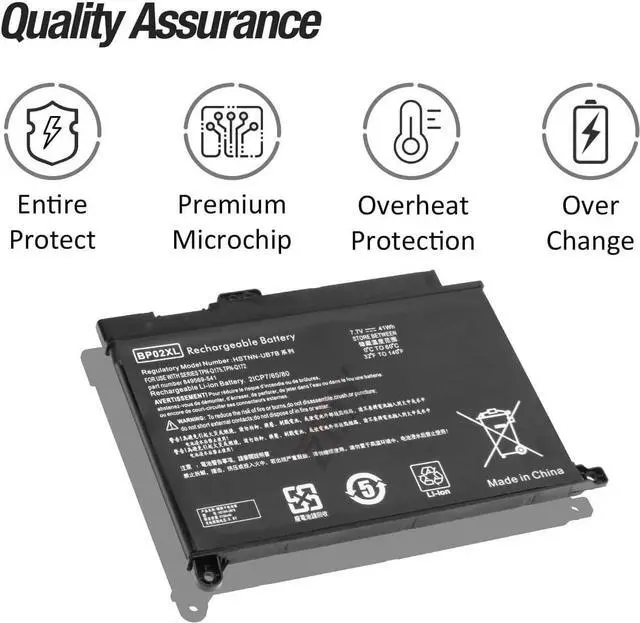 BP02XL 849909-850 Batería de Repuesto para computadora portátil Compatible for HP Pavilion 15 15-AU000 15-AU010WM 15z-AW000 AW068NR AW053NR AW002LA TPN-Q172 849569-421 849569-542 7.7V 41Wh