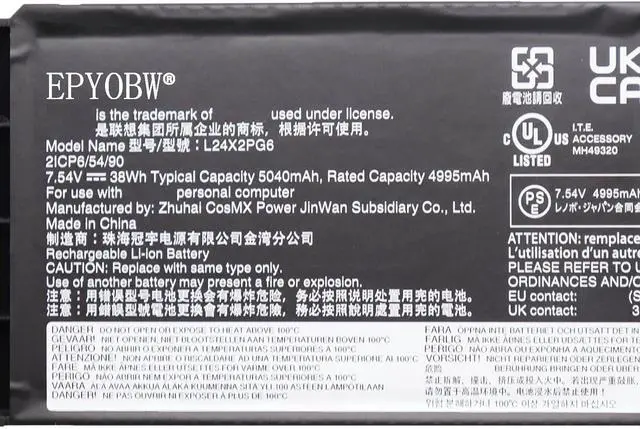 Specifications Battery Model: L24X2PG6 / Voltage: 7.54V / Capacity: 38Wh 5040mAh 2-cell / Color: Black / Condition: Brand New.
