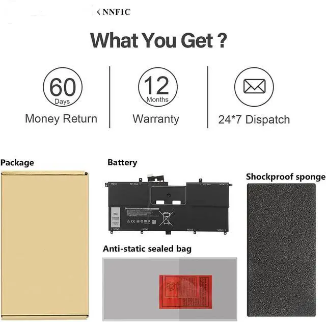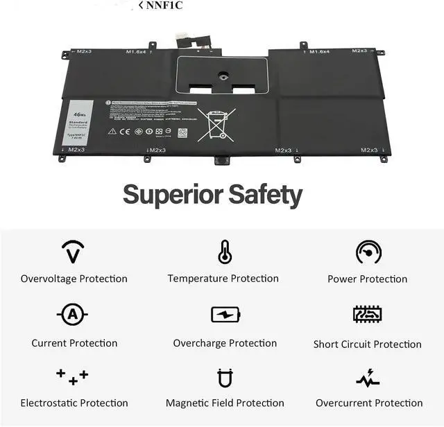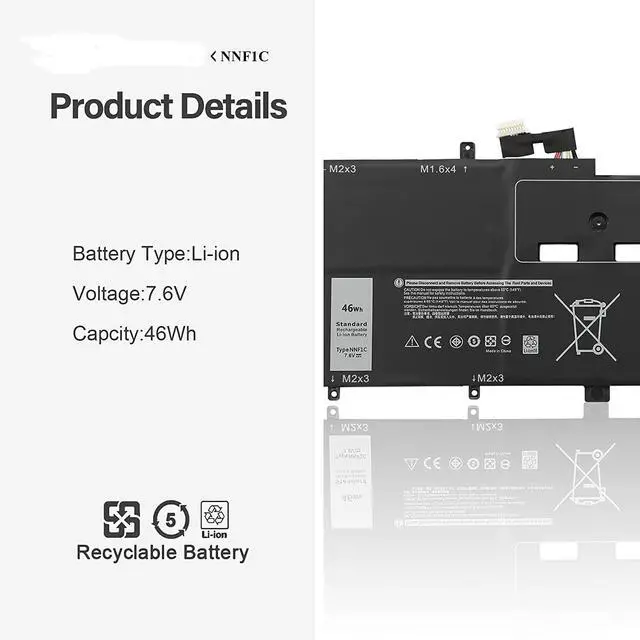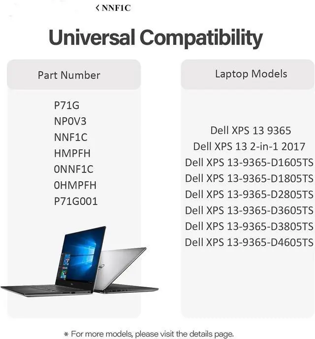NNF1C HMPFH Batería para portátil Compatível com Dell XPS 13 9365 2-in-1 2017 P71G P71G001 XPS 13-9365-D1605TS XPS 13-9365-D1805TS 13-9365-D2805TS 13-9365-D3605TS 13-9365-D3805TS -3 7.6V 46Wh