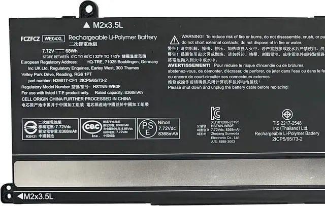 Replacement for Part NumberWE04XL WE04068XL N39817-CF1 HSTNN-WB0F N39857-005 N66427-001 2ICP5/6573-2
