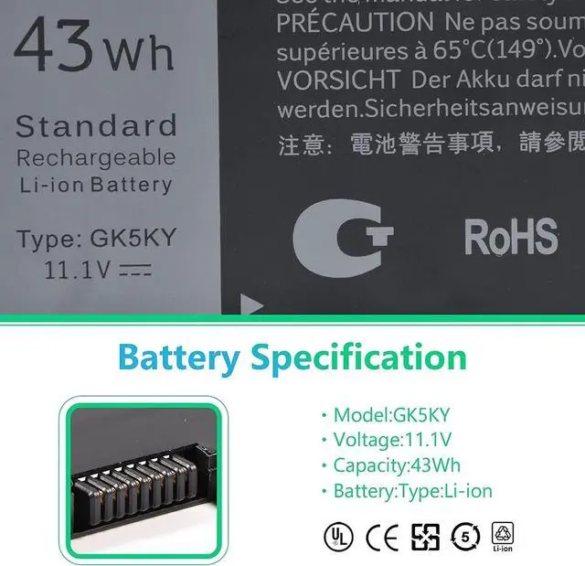 GK5KY 43Wh 11.1V Batería para portátil Compatível com Dell in spiron 11 3147 3148 3152 Series in spiron 13 7353 7352 7347 7348 7359 7558 7568 15 7558 7568 4K8YH RHN1C 92NCT P20T P20T001 451-BBKK