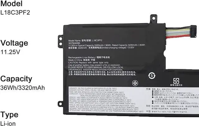 L18C3PF2 Batería para portátil Compatível com V155-15API V340-17IWL Ideapad L3-15IML05 L340-15API L340-15IWL L340-17API L340-17IWL Series L18M3PF2 L18L3PF1 L18D3PF1 5B10T03401 11.25V 36Wh