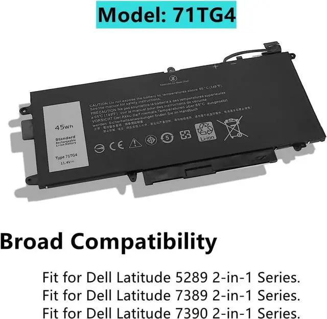 71TG4 Batería para portátil Compatível com Dell Latitude 5289 7389 7390 2-in-1 P29S001 P29S002 Series 071TG4 X49C1 0X49C1 CFX97 0CFX97 725KY N18GG 11.4 V 45Wh