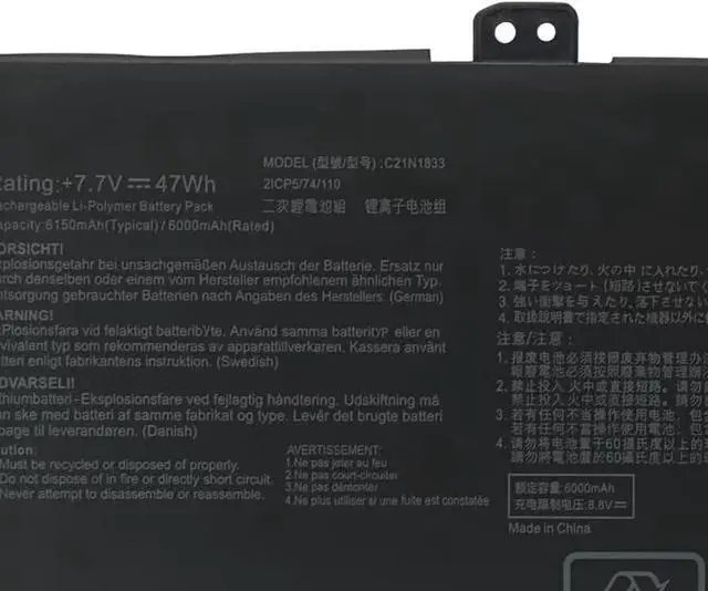 C21N1833 Batería para portátil Compatível com Asus ZenBook 14 UM431 UM431DA UX431 UX431FA UX431FL UX431FN VivoBook S14 S431FA S431FL BX431FA S4500F U4500F Series Notebook 7.7V 47Wh