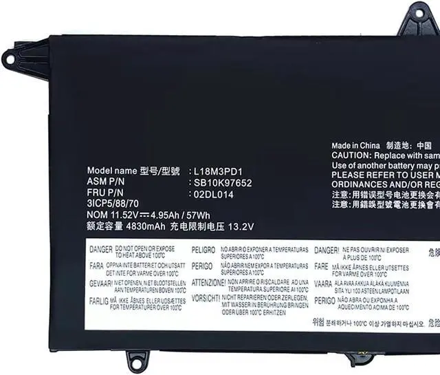 L18M3PD1 02DL014 Batería para portátil Compatível com Thinkpad T14S T490S T495S Series L18L3PD1 L18C3PD1 02DL013 02DL015 02DL016 5B10W13911 L18C3PD2 L18M3PD2 SB10K97651 11.52V 57Wh