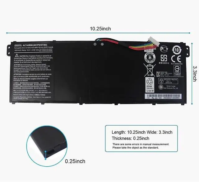AC14B8K 4ICP5/57/80 Batería para portátil Compatível com Acer Chromebook CB3-111 CB5-311 CB5-571 CB3-531 Swift 3 SF314-51 SF314-52 ES1-512 ES1-511 R5-471T R7-371T R3-131T ES1-511 ES1-111M 48Wh