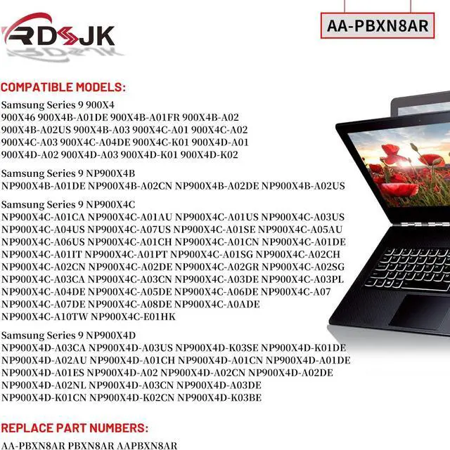 Compatible Models: For Samsung Series 9 900X4 900X46 900X4B-A01DE 900X4B-A01FR 900X4B-A02 900X4B-A02US 900X4B-A03 900X4C-A01 900X4C-A02 900X4C-A03 900X4C-A04DE 900X4C-K01 900X4D-A01 900X4D-A02 900X4D-A03 900X4D-K01 900X4D-K02; For Samsung Series 9 NP900X4B NP900X4B-A01DE NP900X4B-A02CN NP900X4B-A02DE NP900X4B-A02US; For Samsung Series 9 NP900X4C NP900X4C-A01CA NP900X4C-A01AU NP900X4C-A01US NP900X4C-A03US NP900X4C-A04US NP900X4C-A07US NP900X4C-A01SE NP900X4C-A05AU NP900X4C-A06US NP900X4C-A01CH