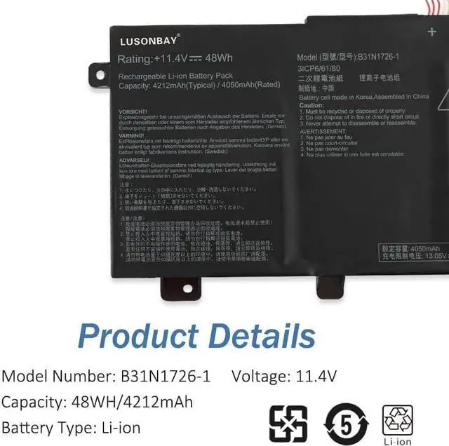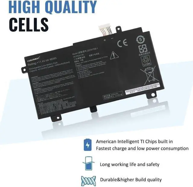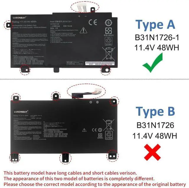 True Charging Capacity That LastsB31N1726 battery for laptop/notebook, laptop battery specifications Capacity: 48Wh Voltage:11.4V, Battery Type: Li-ion Condition:100% Brand New Cell: Grade "A++" Cell. Each battery will undergo multiple strict test processes before shipping, we strive to bring the highest quality battery to each customer and give your laptop a new lease of life.