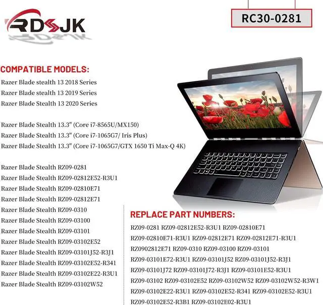 Compatible Models: Razer Blade Stealth 13 2018, Razer Blade Stealth 13 2019, Razer Blade Stealth 13 2020, Razer Blade Stealth GTX 1650 Max-Q, Razer Blade Stealth RZ09-02812E52-R3U1, Razer Blade Stealth i7-8565Ur, Razer Blade Stealth RZ09-0281 Series, Razer Blade Stealth RZ09-02810E71, Razer Blade Stealth RZ09-02812E71 Series, Razer Blade Stealth RZ09-03102E52 Series, Razer Blade Stealth RZ09-03102W52 Series