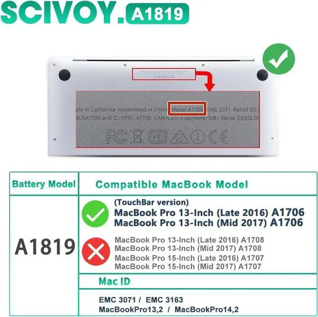 PERFECT-FIT BATTERY MODELS: Support for A1819 A1706 A1706(EMC 3071) A1706(EMC 3163).