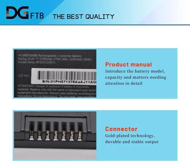 Replacement Battery Type: Li-ion; Voltage: 11.4V; Capacity: 2290mAh/27Wh