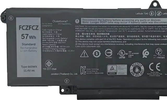 SpecificationsBattery Model:66DWX // Voltage:11.4V // Capacity:57Wh 4878mAh 3-Cells // Color:Black // Condition:Brand New.