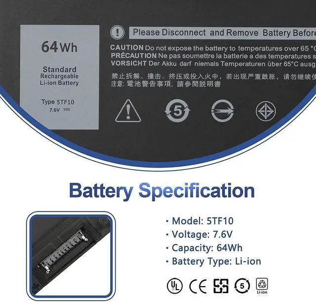 64Wh 5TF10 Batería de Repuesto para computadora portátil Compatible for Dell Precision 7730 7740 7530 7540 P34E P34E001 P34E002 P74F P74F001 P74F002 NYFJH RY3F9 0RY3F9 7M0T6 GHXKY 7.6V 8000mAh