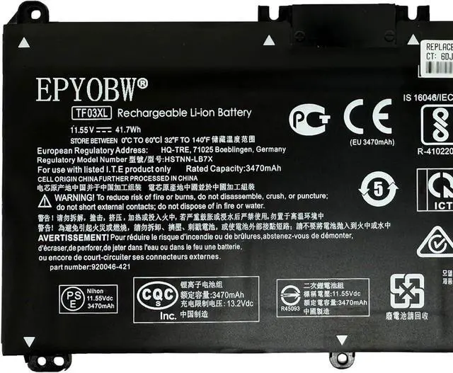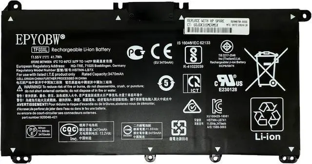 Replace Part Number TF03XL TF03041XL HSTNN-IB7Y HSTNN-LB7J HSTNN-LB7X HSTNN-UB7J 920046-121 920046-421 920046-541 920070-855 TPN-Q188 TPN-Q189 TPN-Q190 TPN-Q191 TPN-Q192 TPN-Q196