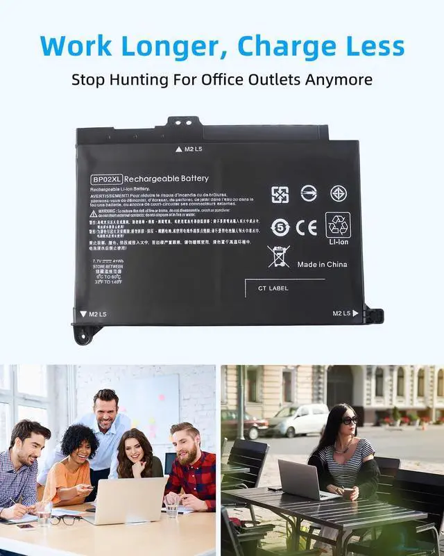 SPECIFICATION : Model Name: BP02XL BPO2XL BP02041XL Cells: 2-cell, Voltage: 7.7V, Capacity: 41Wh; Grade A cells ensure fast charges and low power consumption; Built-in circuit protection ensures both safety and stability. Condition: 100% New; Battery life: More than 1000 cycles.
