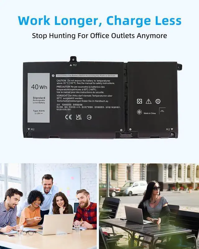 SECURITY AND WARRANTY: JBERY JK6Y6 laptop batteries have passed strict intelligent detection, such as short circuit protection, over voltage protection, discharge protection, over current protection, which is very important for batterys use cycle and safety. All batteries are equipped with high quality material to ensure good performance. CE, FCC, RoHS certificated. 90 Days Money Return 18 Months Replacement2 Years Tech Assistance
