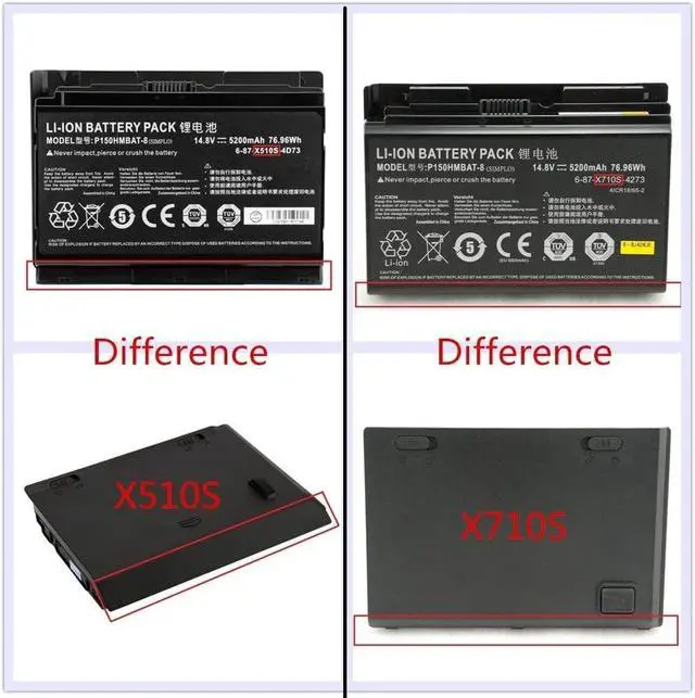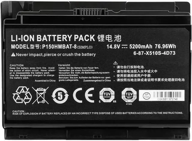 14.8V 5200MAH 76.96WH P150HMBAT-8 Battery Compatible for CLevo 6-87-X510S-4D73, 6-87-X510S-4D74, 6-87-X510S-4J7, 6-87-X510S-4J72, P150HMBAT. -8,NP8268-S,P150SM