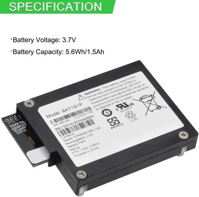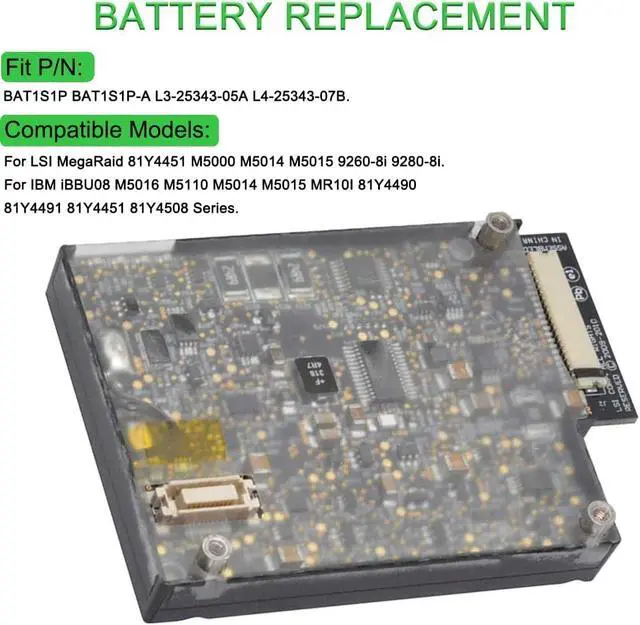 BAT1S1P Replacement Battery Compatible for LSI MegaRaid 81Y4451 M5000 M5014 M5015 9260-8i 9280-8i Series IBM iBBU08 M5016 MR10I 81Y4490 (3.7V 1.5Ah 5.5) 6Wh)