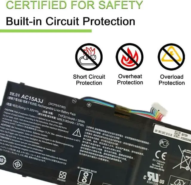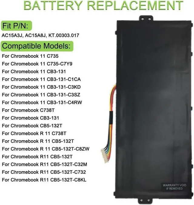 10.8V 36Wh 3490mAh AC15A3J AC15A8J KT.00303.017 Replacement Battery Compatible for Acer Chromebook 11 C735 CB3-131 C738T CB5-132T