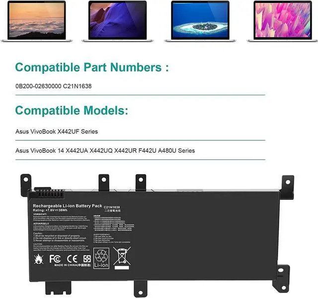 C21N1638 Battery Compatible for ASUS VivoBook 14 X442UN X442UR-1C X442UQ-FA053T X442UF-1C X442UA-FA022T X442UQ-1B VivoBook 14 X442UQ-FA005T VivoBook 14 X442 UR-FA023T 0B200-02630000
