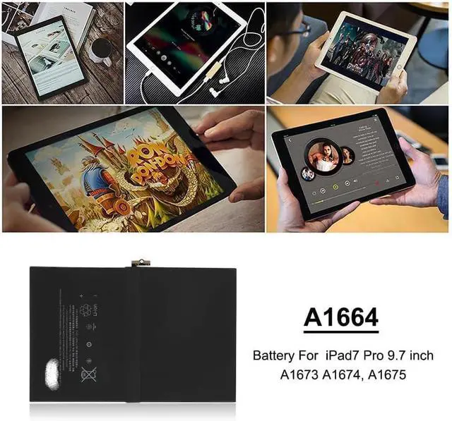 A1664 Tablet Battery Replacement Compatible for Apple iPad 7 Pro 9.7 Inch A1673 A1674 A1675 3.82V 27.9WH 7306mAh