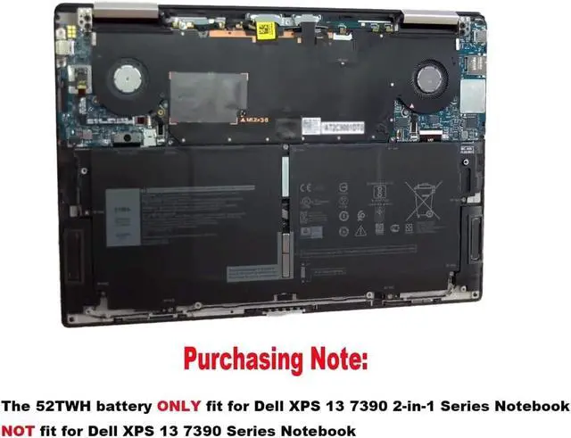 52TWH Laptop Battery Compatible for Dell XPS 13 7390 2-in-1 Series Notebook MM6M8 0MM6M8 7.6V 51Wh 6375mAh 4-Cell