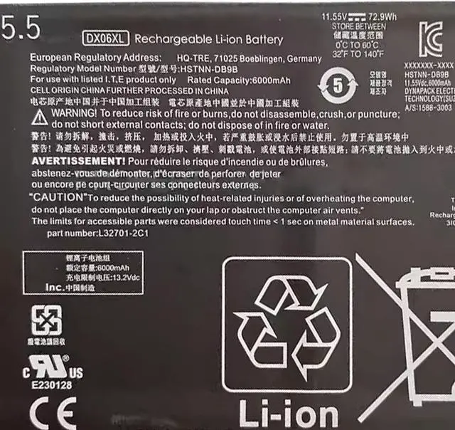DX06XL L32749-005 HSTNN-DB9B L32701-2C1 Laptop Battery Compatible for HP Omen X 2S 15-DG 15-DG0019TX 15-DG0003NC 15-DG0075CL 15-DG0020TX 15-DG001 8TX Series(11.55V 72.9Wh)