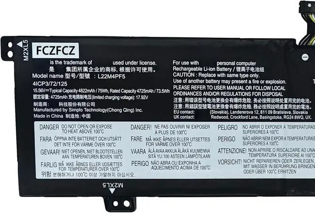 SpecificationsBattery Model: L22M4PF5 // Voltage:15.56V // Capacity:75Wh 4822mAh 4-cell // Color:Black // Condition:Brand New.